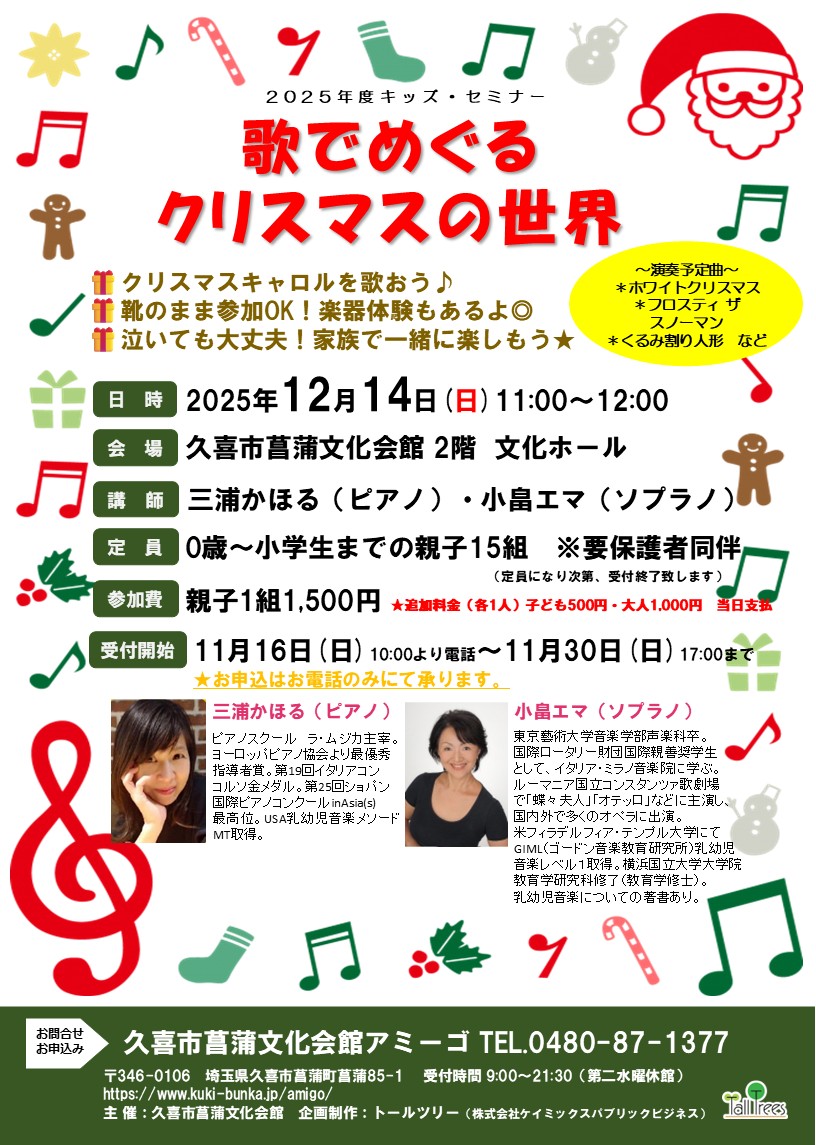 | 主催者 | 久喜市菖蒲文化会館 指定管理者株式会社ケイミックスパブリックビジネス |