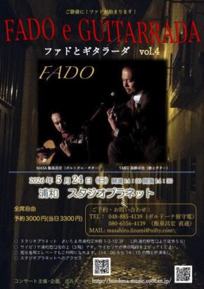 ポルトガル音楽「ファドとギタラーダ」を楽しんでいただくコンサートです。