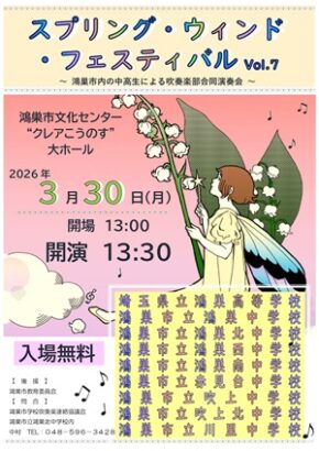 | 主催者 | 鴻巣市学校吹奏楽連絡協議会 (鴻巣市立吹上北中学校内) |