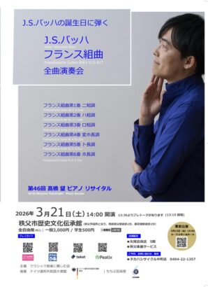 ■2026年3月21日(土)第46回髙橋 望ピアノリサイタル~バッハの誕生日に弾くフランス組曲全曲演奏会