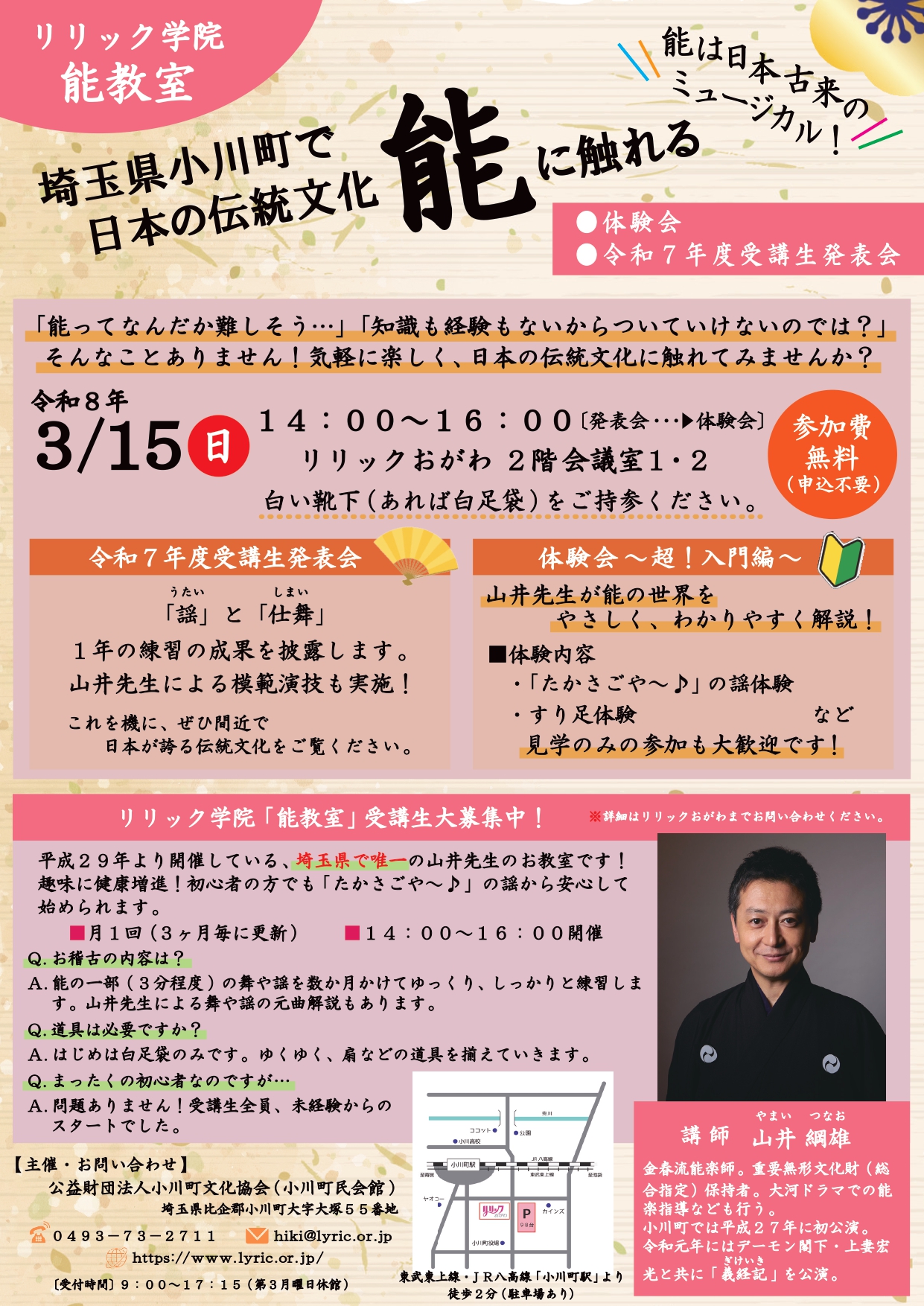 \リリックおがわでは「能教室」の受講生を募集しています!/