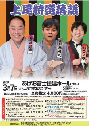 問い合わせ先 | あげお富士住建ホール(上尾市文化センター)048-774-2951 |