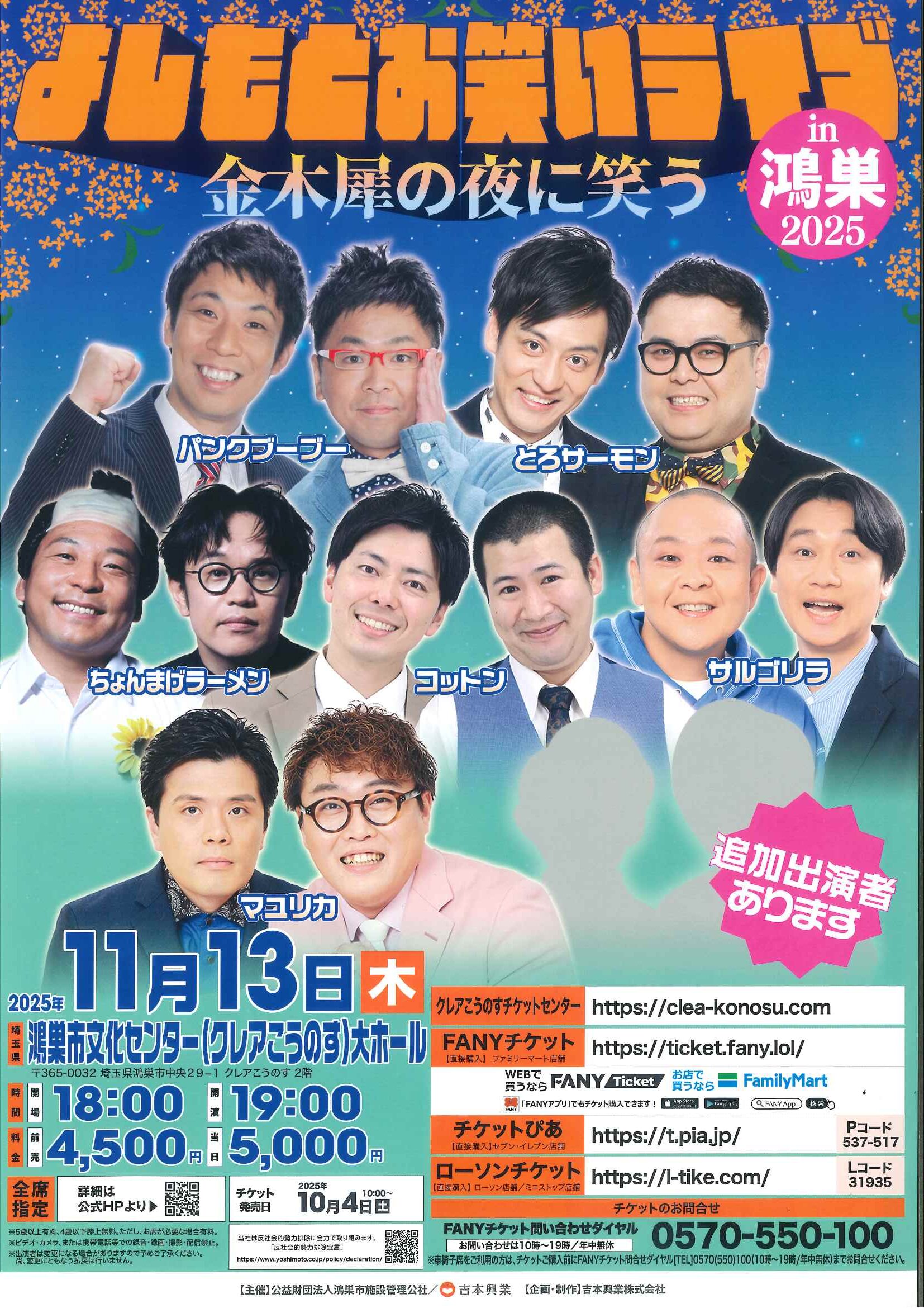 | 主催者 | 主催:吉本興業 / 共催:鴻巣市施設管理公社 |