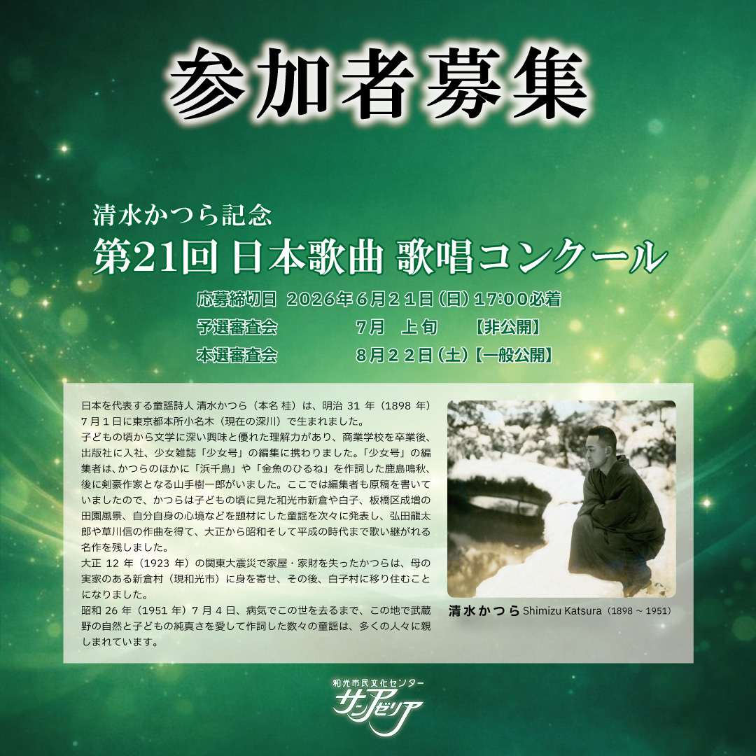 和光市民文化センター サンゼリアより発信する日本の歌の振興に資する