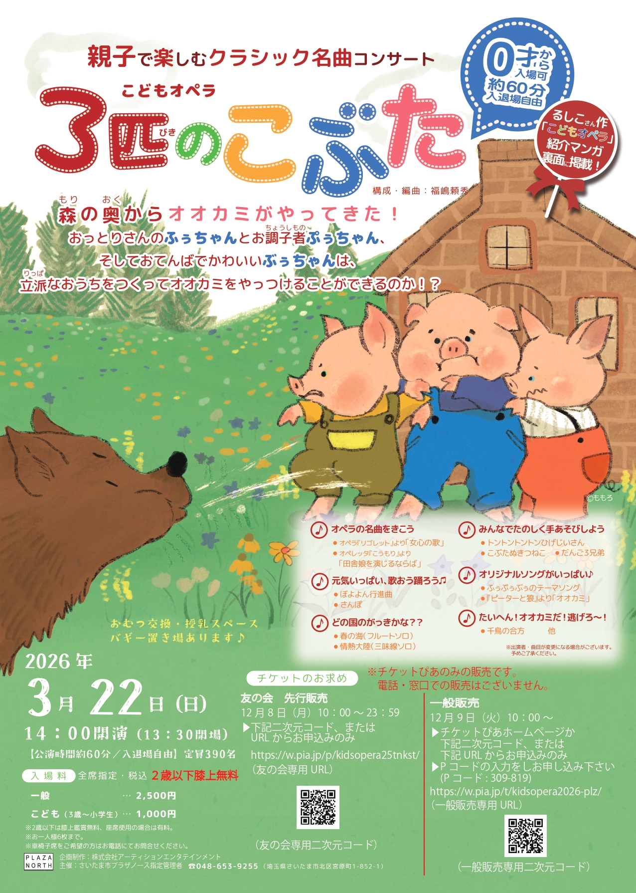 | 備考 | 申込方法:チケットぴあ https://w.pia.jp/t/kidsopera2026-plz/ (Pコード 309-819) ※本公演は、電話・窓口販売はございません。 |